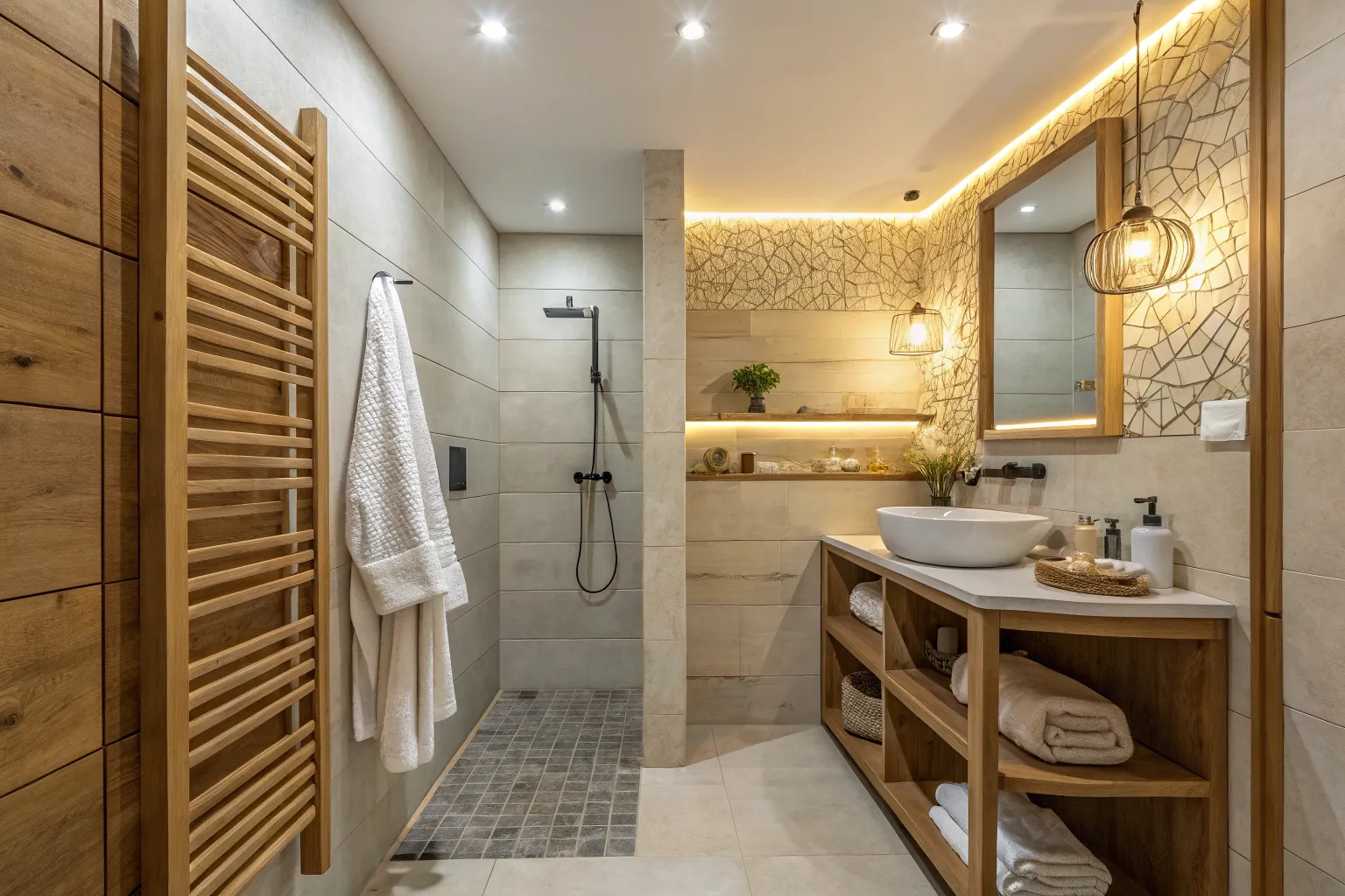 Line your shower walls or ceiling with LED strips to accentuate architectural features. This approach creates a sleek, modern look that’s both stylish and functional.