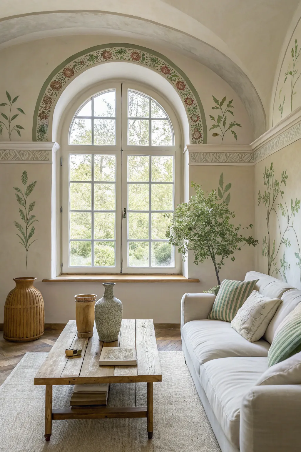 Add depth and intrigue with faux window arches that mimic classic architectural elements. These can create a sense of openness and add a vintage touch to modern spaces.