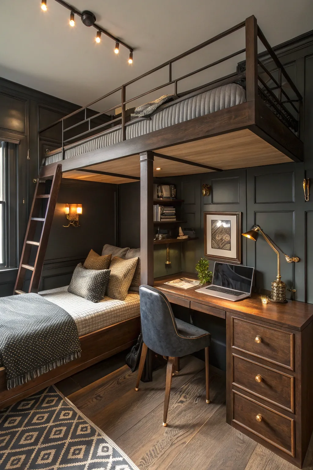 - Underbed Desk Workspace: Add functionality with a stylish desk designed to fit seamlessly under your lofted bed.