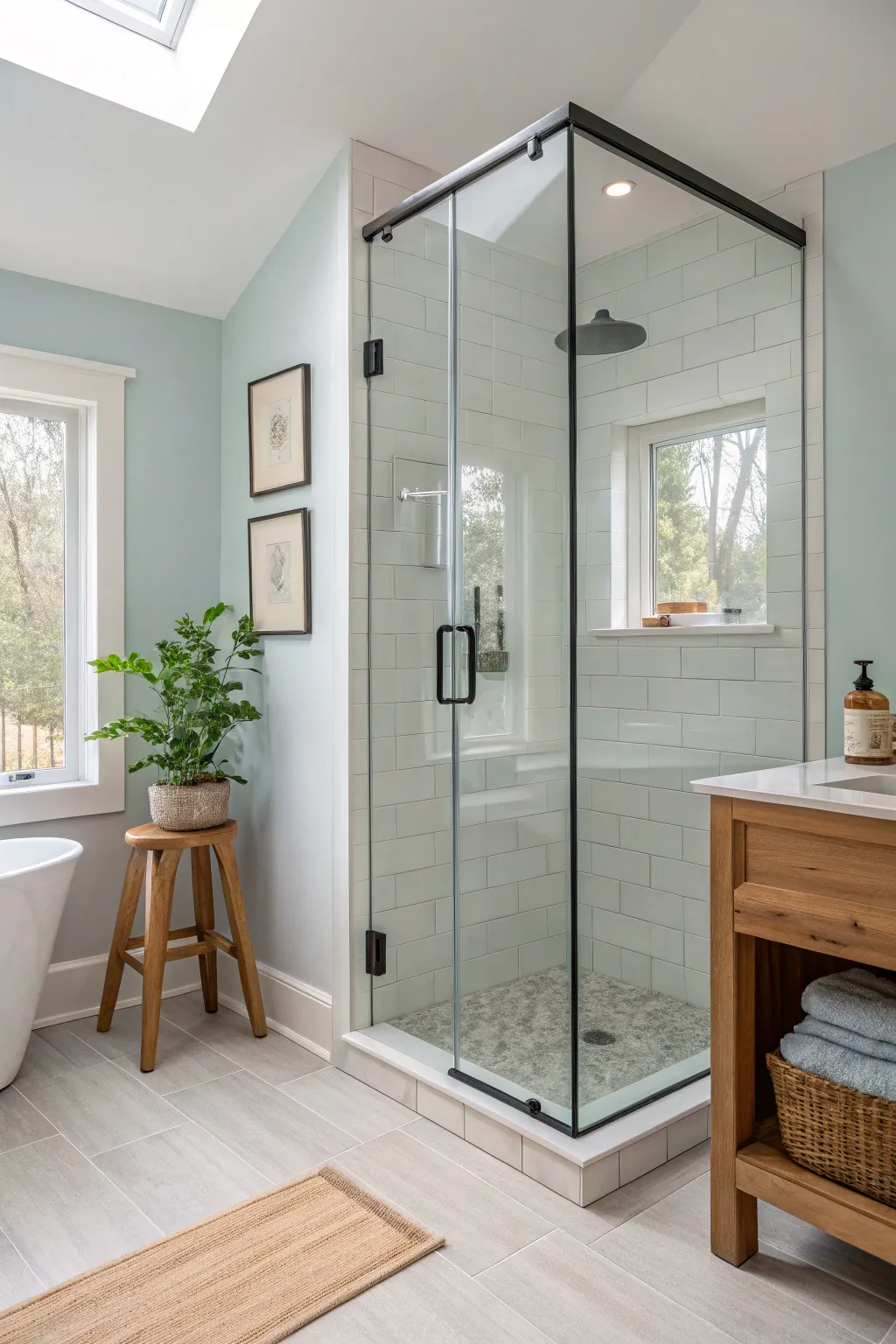 Clear glass panels allow light to flow freely, making even the smallest bathrooms feel larger. This design is a favorite of mine for its ability to highlight beautiful tile work.