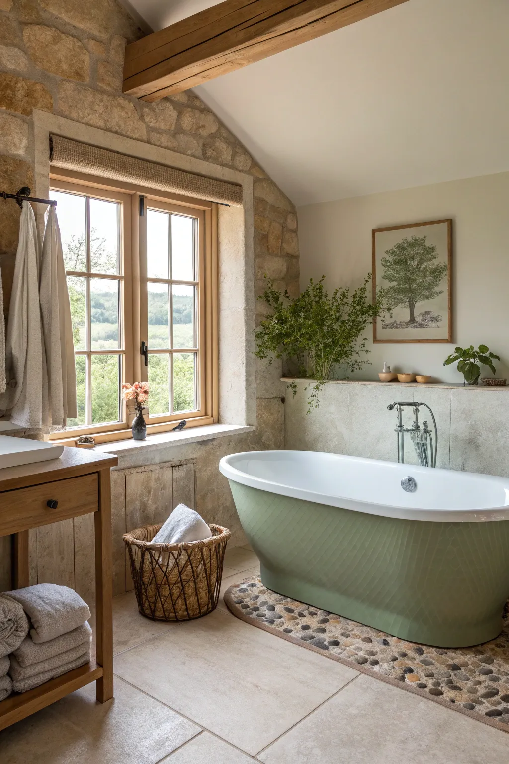 A freestanding bathtub is not just a luxury but a statement. It’s the perfect centerpiece for a natural bathroom, offering both style and comfort.