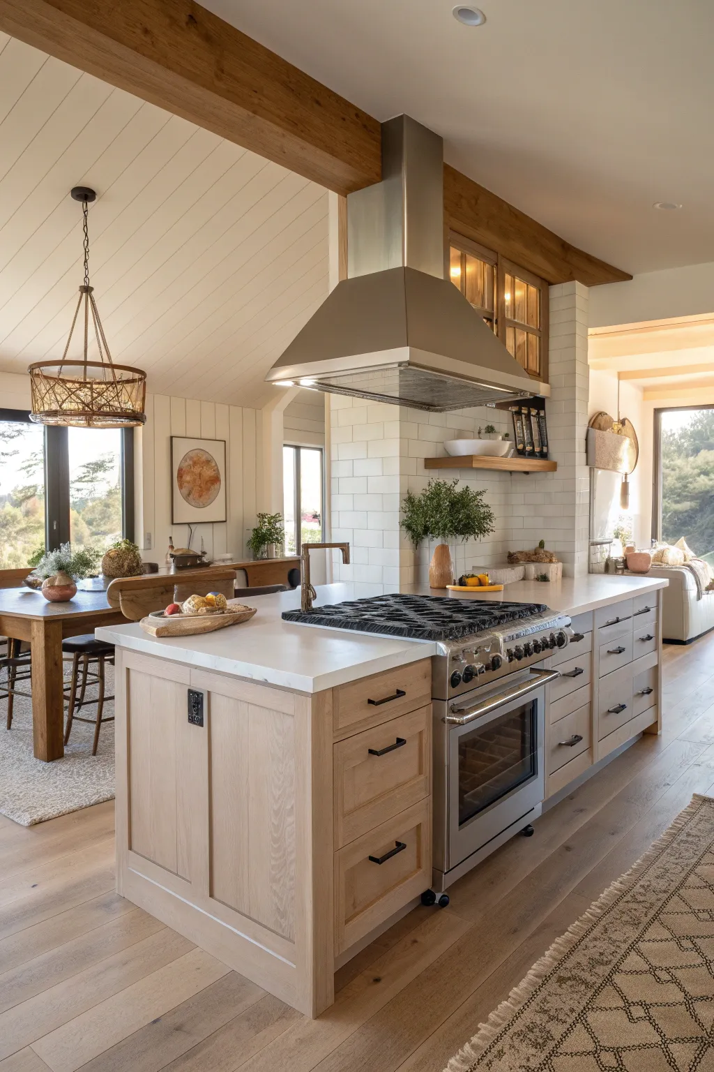 Proper ventilation is crucial for an island with a stove. I recommend sleek overhead exhaust systems that blend functionality with a modern aesthetic.