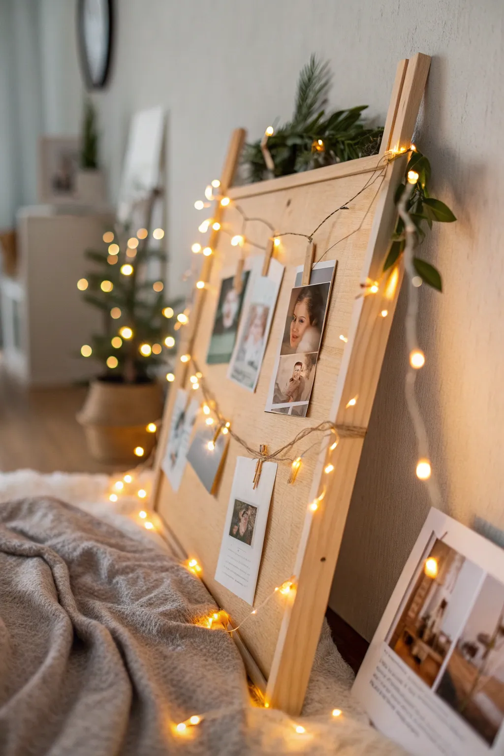 Add a bit of magic with fairy lights intertwined with your favorite photos. This gives your board a warm, enchanting glow that I absolutely adore!