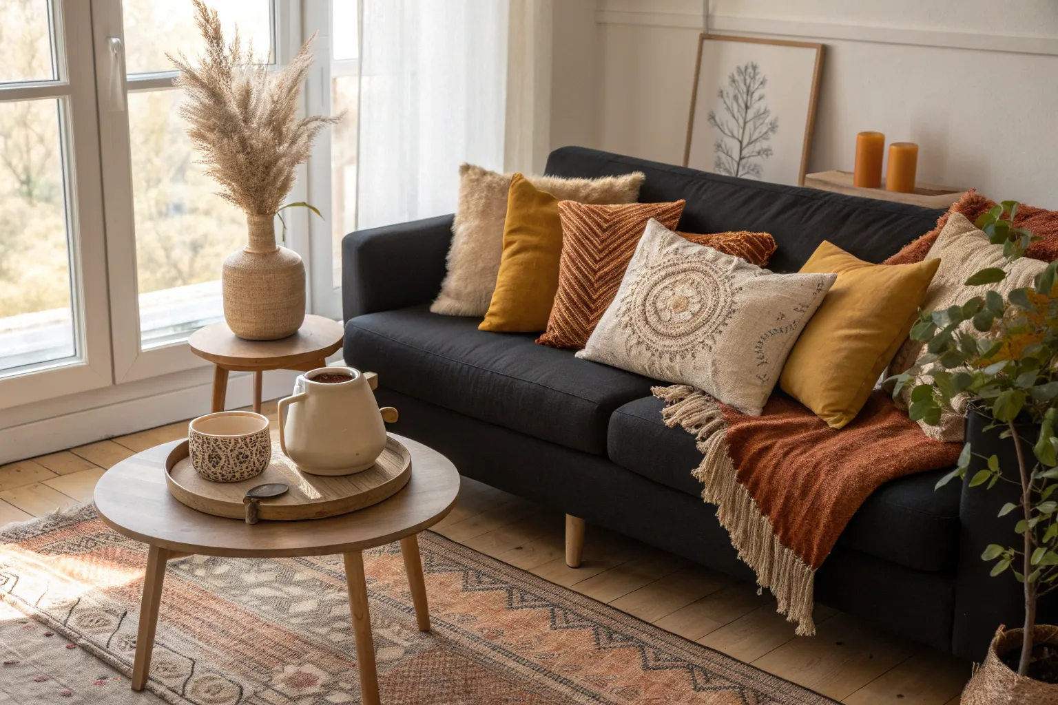 - Bohemian Throw Pillow with Tassels: Add a playful charm with this bohemian pillow, featuring vibrant tassels perfect for your black couch.