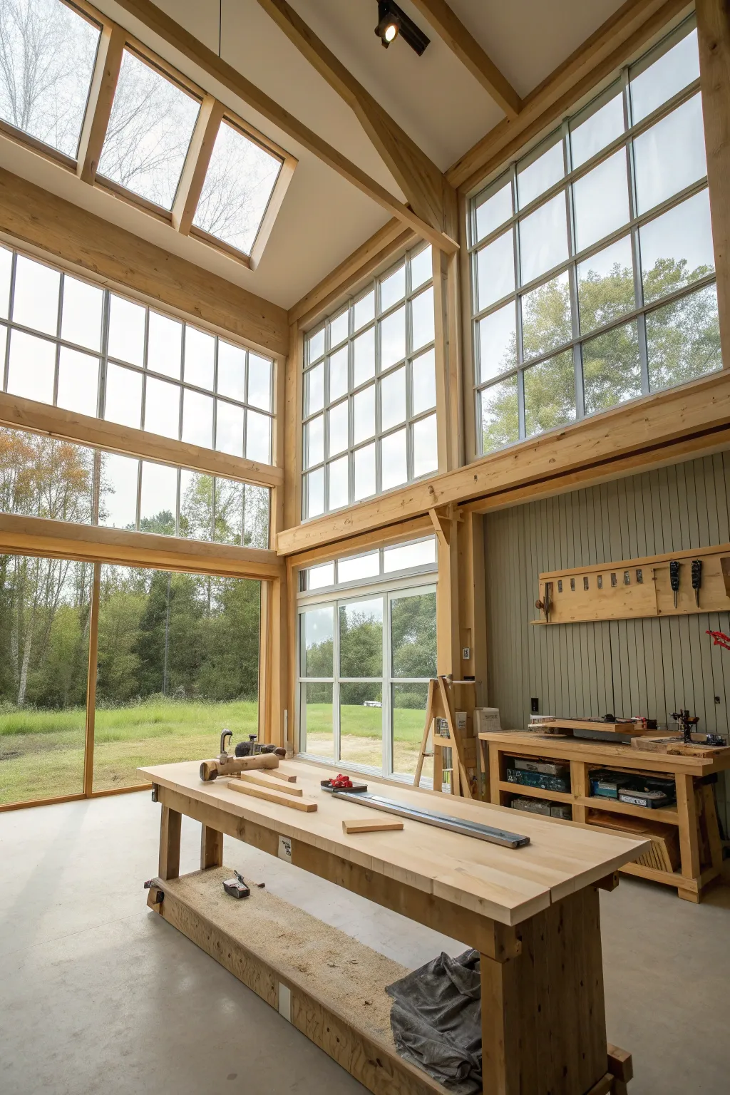 Imagine working in a space flooded with natural light—it’s a game-changer for productivity. Consider adding large windows or skylights to let the sunshine in and brighten your workshop naturally.