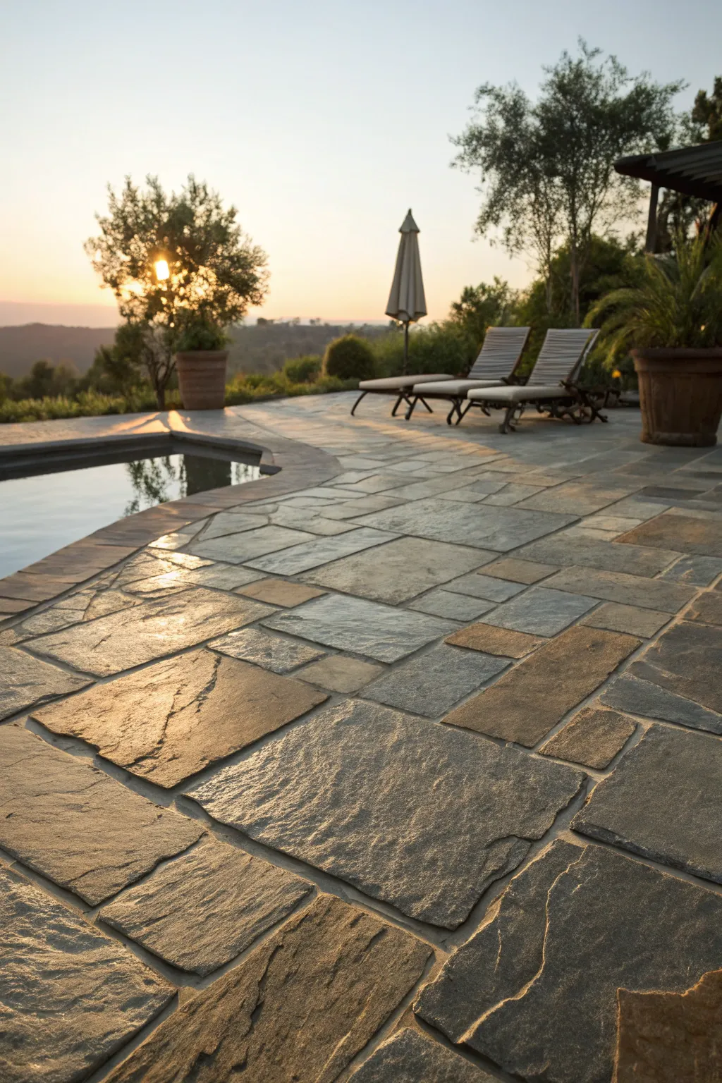 - Natural Stone Pool Deck Tiles: Enhance your pool area with these elegant, durable stone tiles for a timeless, natural look.