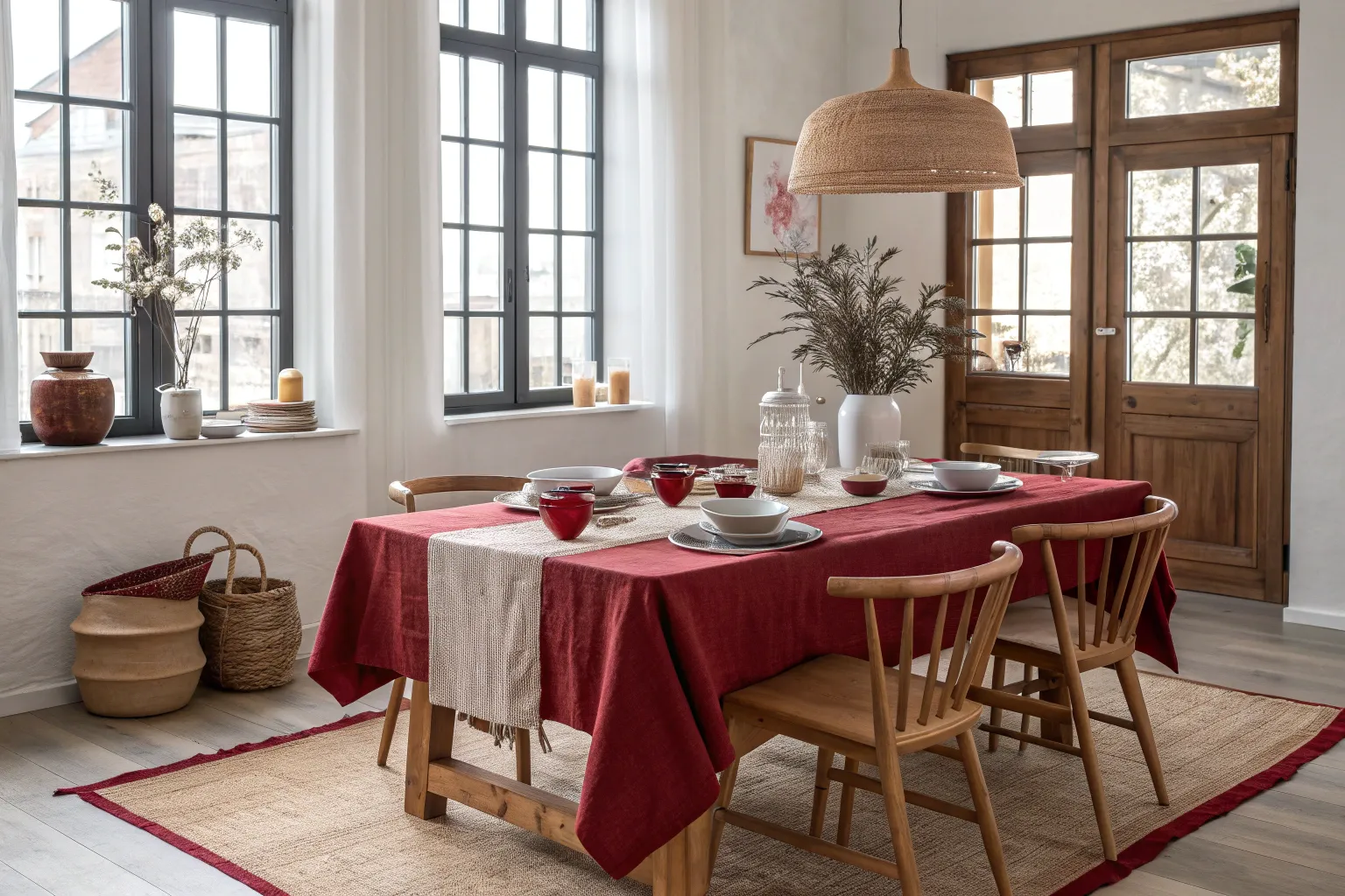 - Red Table Runner: Enhance your dining setup with a red table runner for a flawless, warm ambiance.