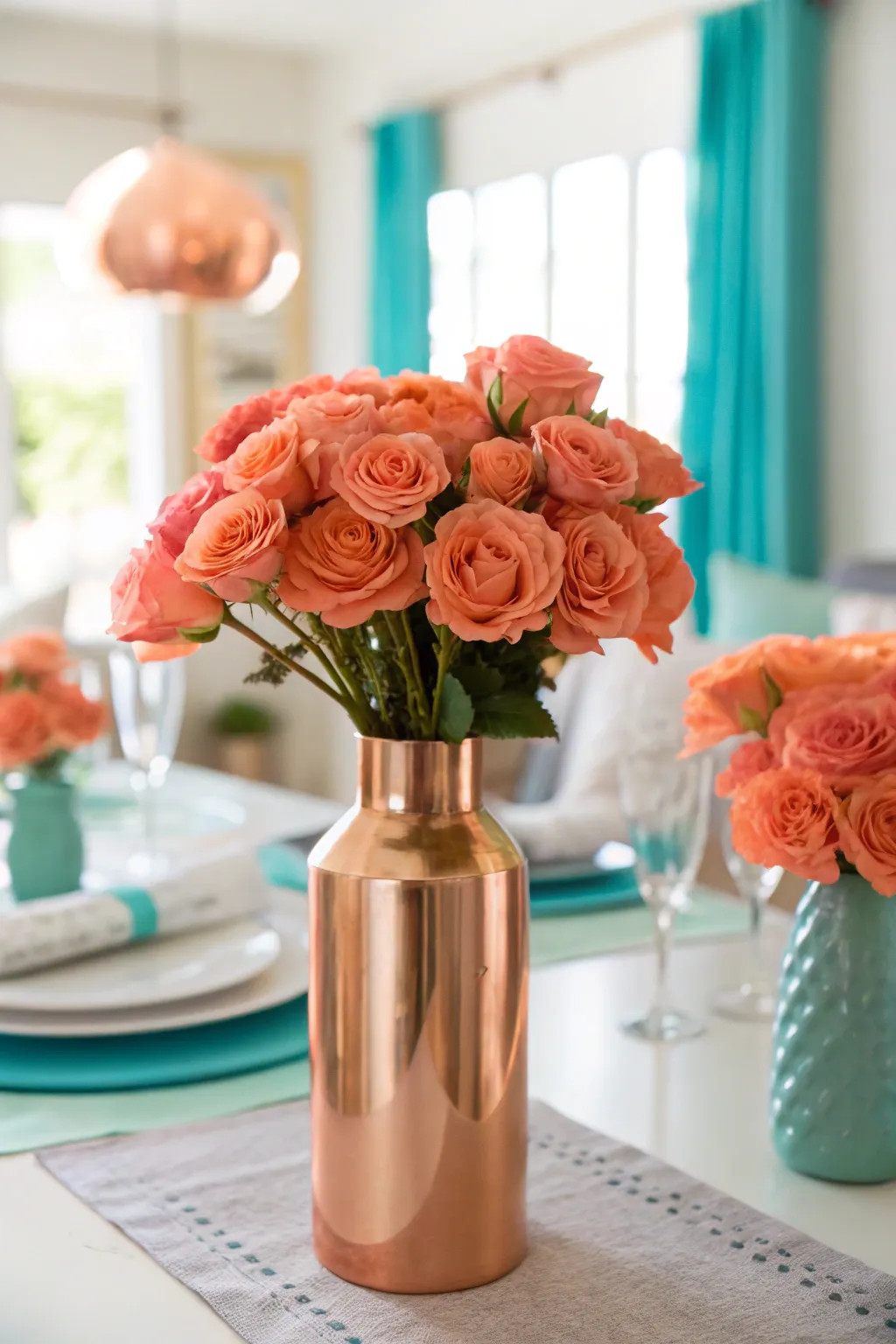 Start with rose gold vases as the centerpiece of your table. I’ve found that their metallic sheen perfectly complements soft blooms like peonies or roses, creating a look that’s both chic and inviting.