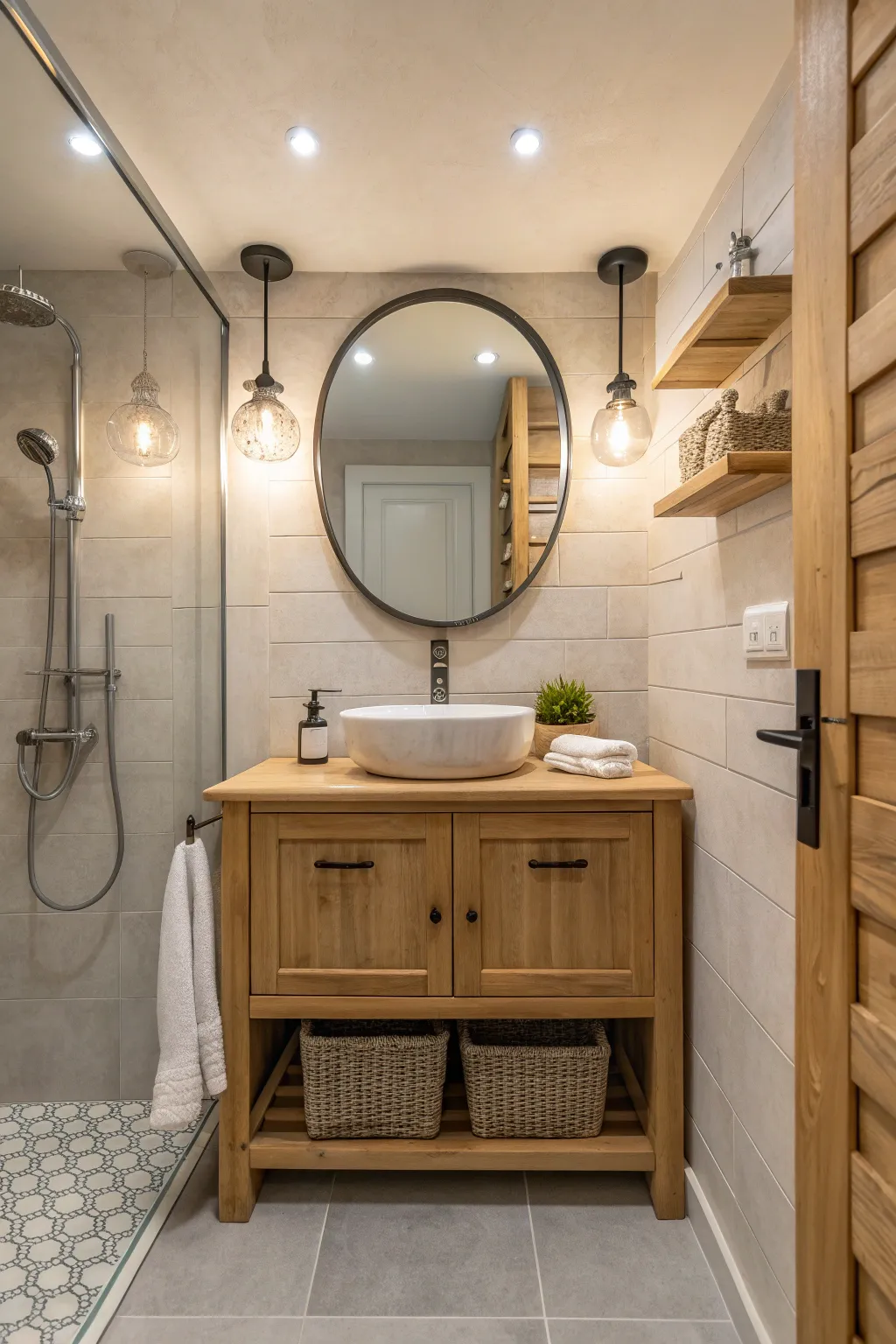 Adding wood or stone elements can bring warmth and texture to your bathroom. I’ve found these materials help create a serene, spa-like atmosphere even in small spaces.