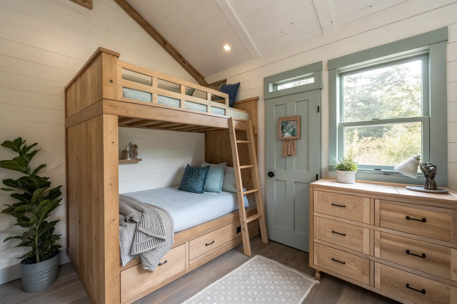 Consider bunk beds to maximize vertical space, leaving more room for activities. From my experience, this setup not only saves space but also adds a playful element to the room.