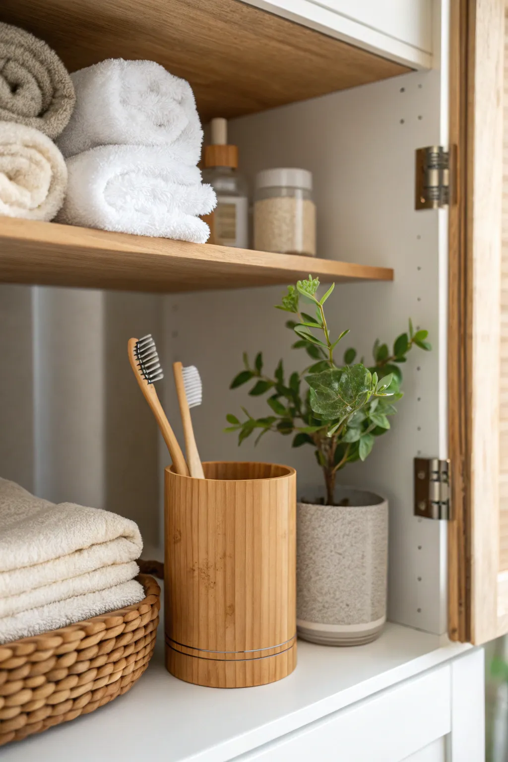 - Bamboo Toothbrush Holder: Enhance your cabinet with a natural bamboo holder, keeping toothbrushes tidy and eco-friendly.