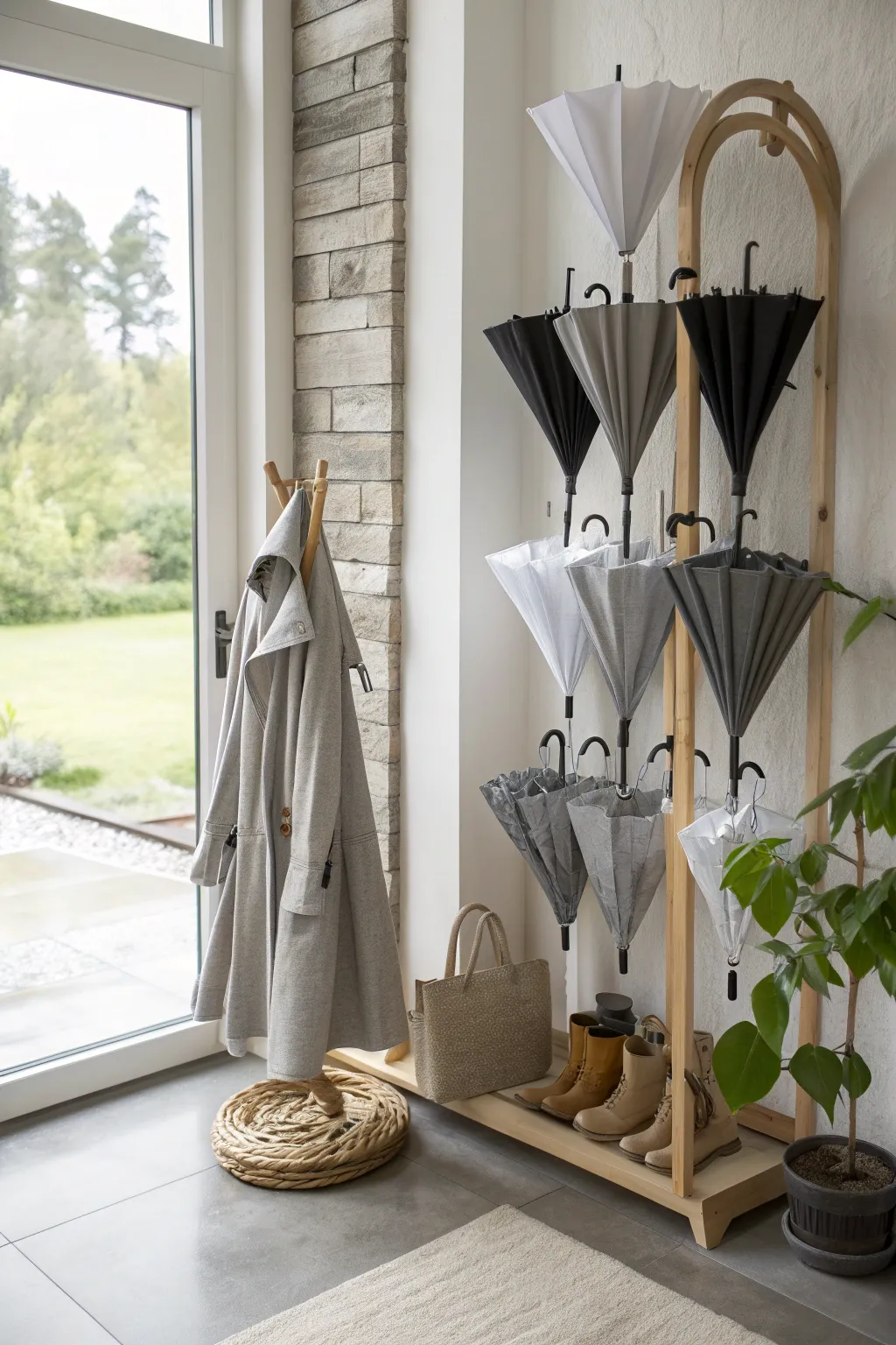 - Monochrome Coat Rack: Enhance your entryway with a sophisticated monochrome coat rack, matching your umbrella display.