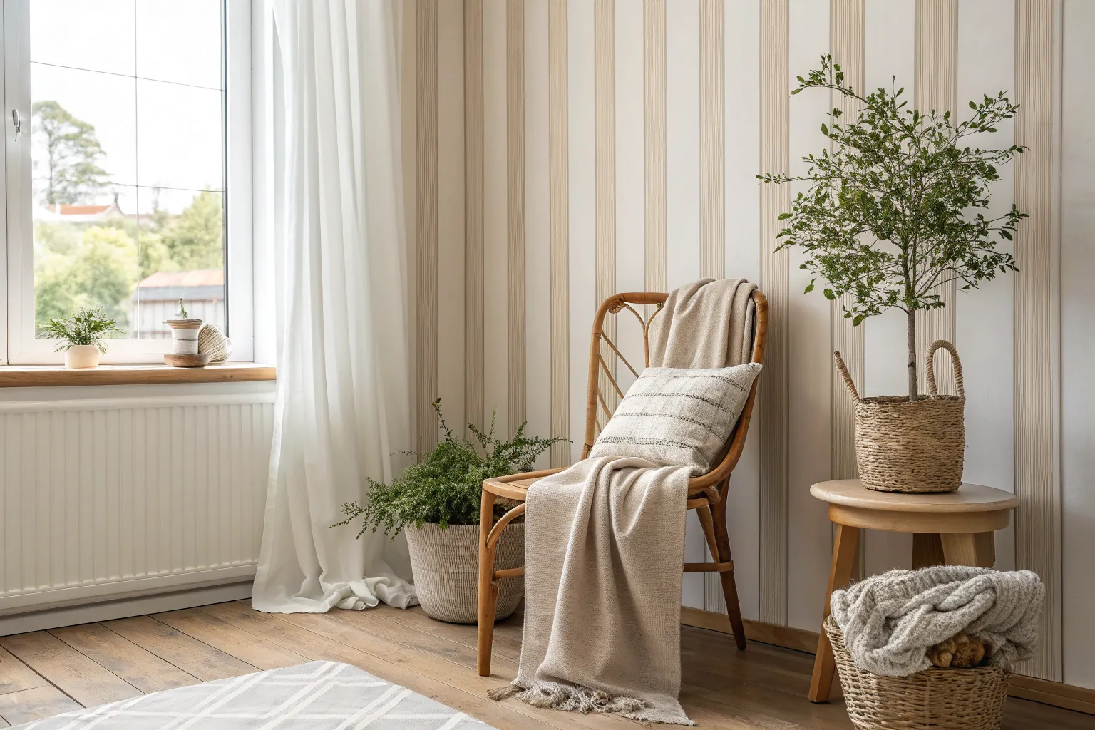 A cozy reading nook can be brought to life with narrow vertical stripes. They add texture without overwhelming the space, perfect for a quiet retreat.📚 #ReadingCorner #CozyNook