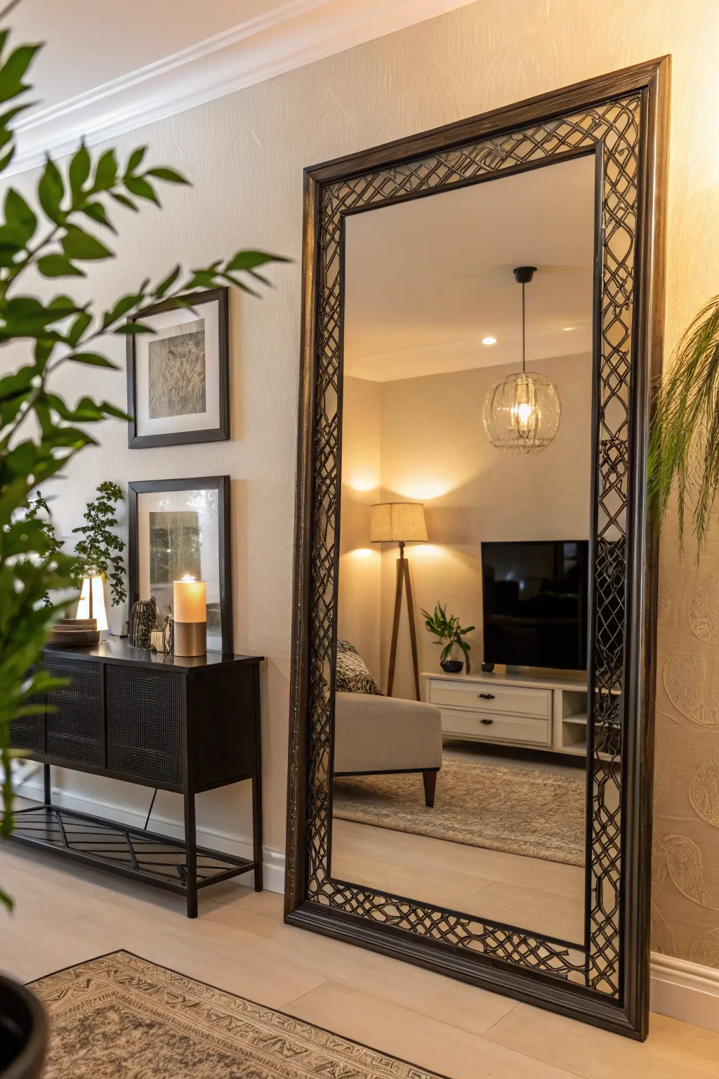 Mirrors in entryways are perfect for a welcoming focal point that also checks your look on the way out. In my entryway, a large mirror is the first thing guests see, setting the tone for the entire home.
