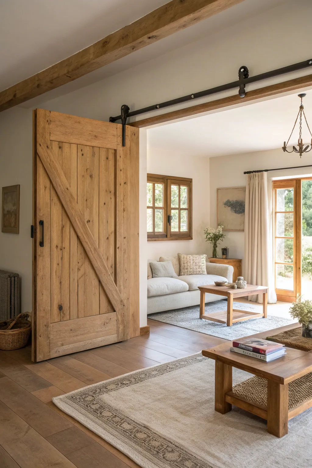 - Reclaimed Wood Barn Door: Enhance farmhouse charm with a reclaimed wood barn door, perfect for rustic interiors.